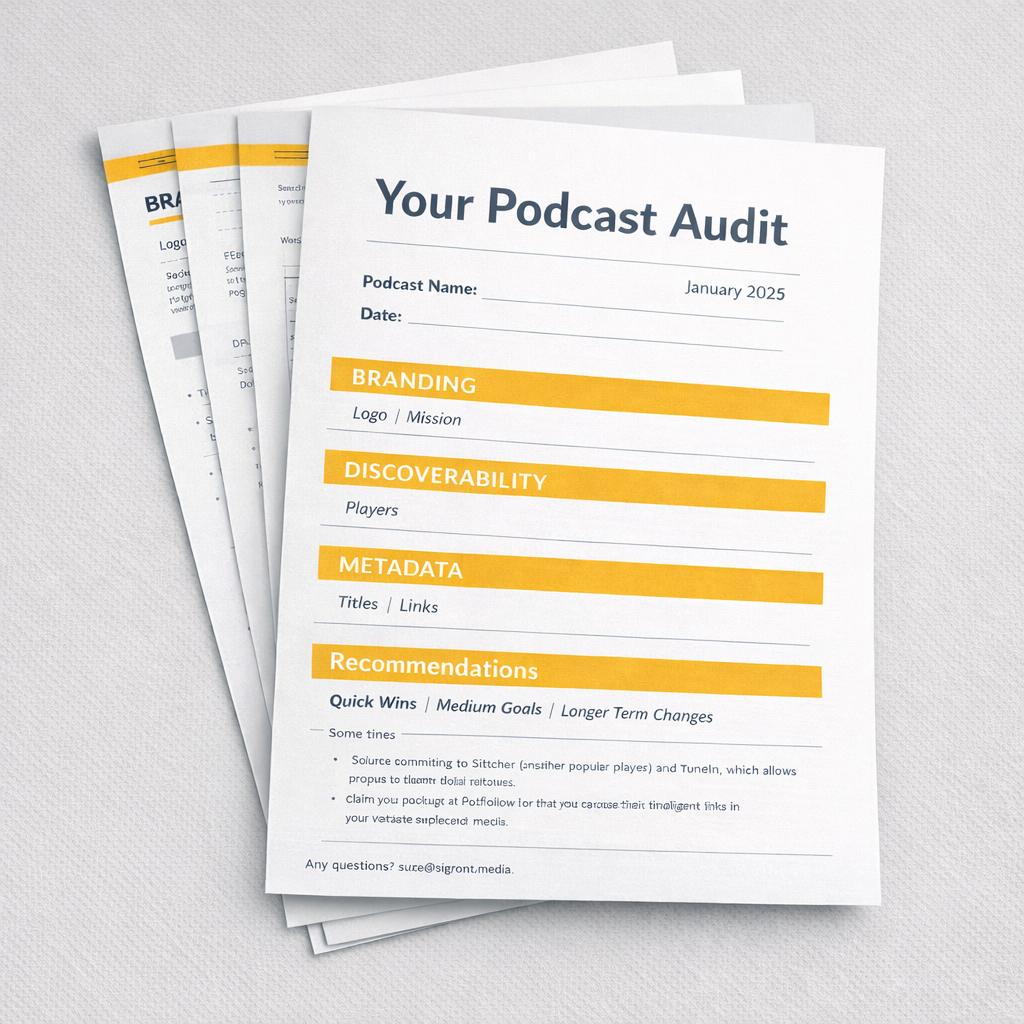 Each audit examines your podcast across the areas that most influence clarity, consistency and growth.